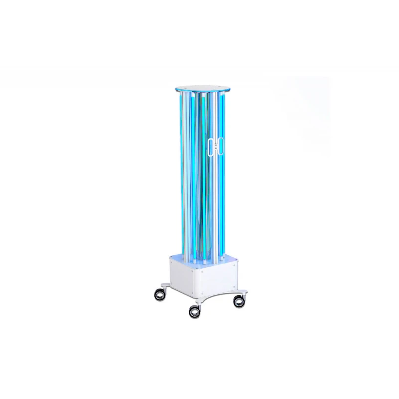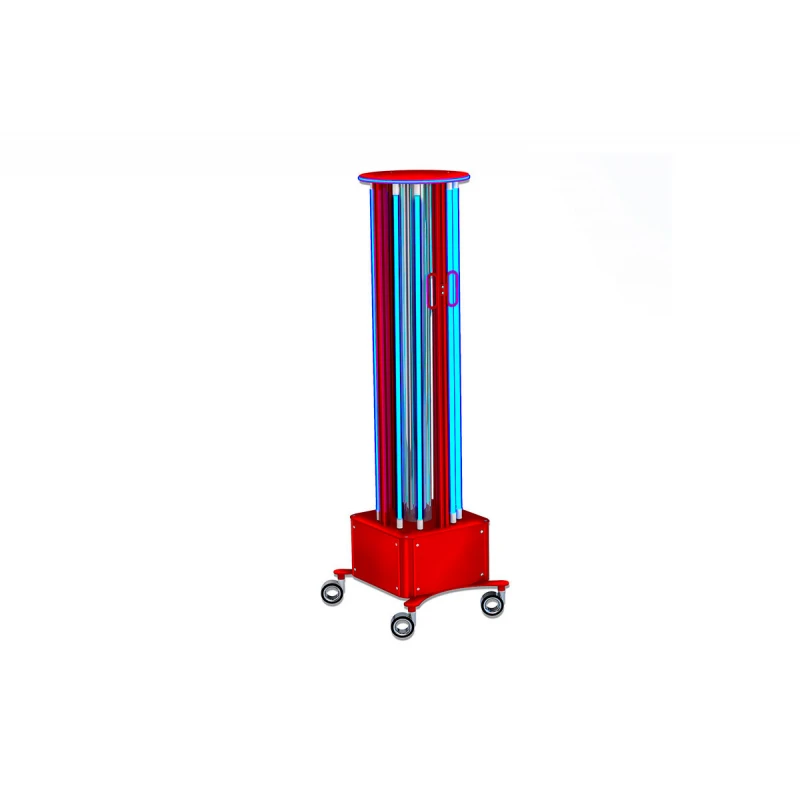 Мобільний бактерицидний опромінювач легко пересувається за допомогою коліс, що забезпечує зручність використання обладнання.